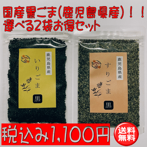 【送料無料】国産黒ごま(鹿児島県産) 選べる2袋 お試しセット 【いりごま すりごま イリゴマ スリゴマ ごまセット】