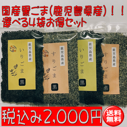 【送料無料】国産黒ごま(鹿児島県産)選べる4袋 お得セット 【いりごま すりごま イリゴマ スリゴマ ごまセット】